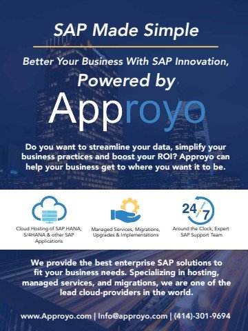 4 Do you want to streamline your data, simplify your business practices and boost your ROI? Approyo can help your business get to where you want it to be. Cloud Hosting of SAP HANA, S/4HANA & other SAP ApplicationsManaged Services, Migrations, Upgrades & ImplementationsAround the Clock, Expert SAP Support TeamWe provide the best enterprise SAP solutions to fit your business needs. Specializing in hosting, managed services, and migrations, we are one of the lead cloud-providers in the world.www.Approyo.com | Info@approyo.com | (414)-301-9694SAP Made SimpleBetter Your Business With SAP Innovation,Powered by